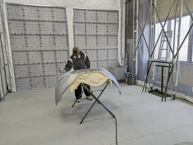 中型トラックから大型トラックまで対応可能な大型塗装ブースも完備。塗料は色褪せしにくい高品質なイサム塗料を使用。パソコンを利用しての調色技術でお客様の満足度を高めます。
